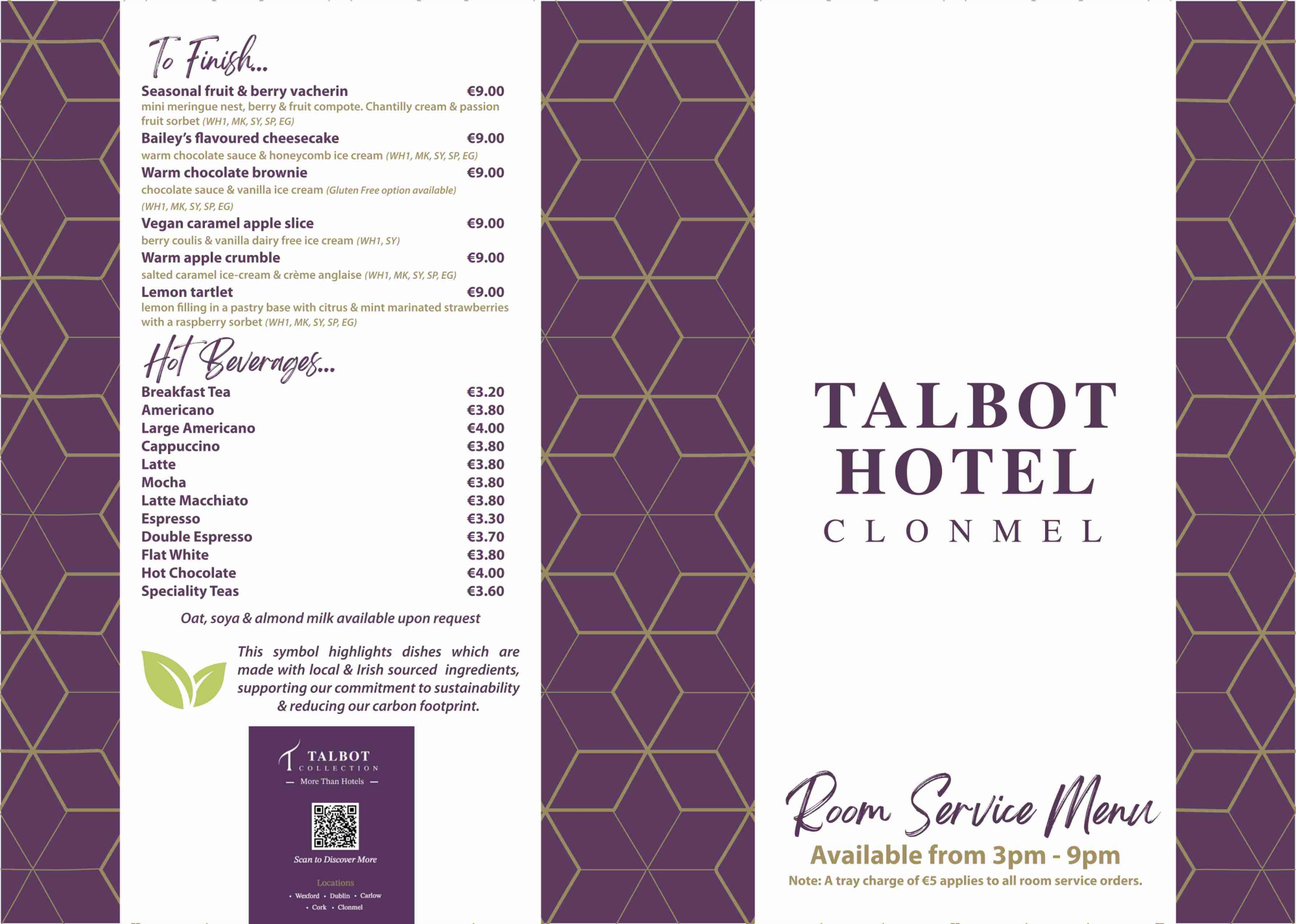 Room service or in-room dining is a treat at Talbot Hotel Clonmel while on your stay with us!